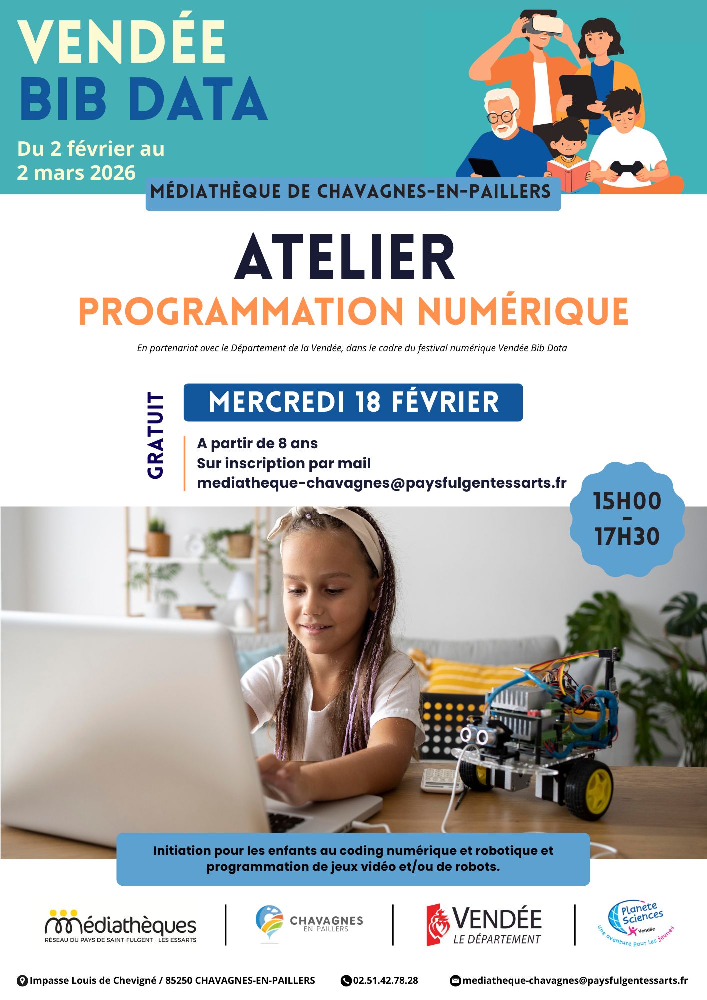 Du 2 février au 2 mars, découvre des activités ludiques et créatives sur le numérique à la bibliothèque, en partenariat avec la Bibliothèque Départemental de la Vendée !