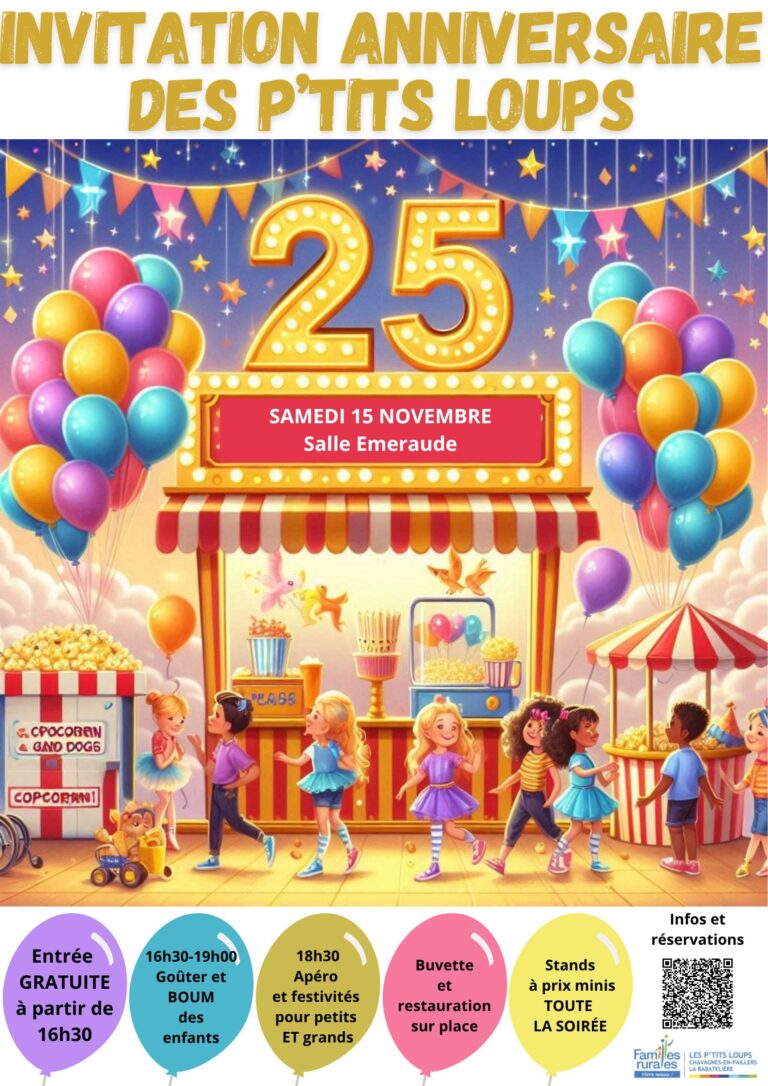 L’association Les P’tits Loups fête ses 25 ans cette année ! Pour notre anniversaire on a envie de faire la fête avec tous nos copains, c’est-à-dire VOUS !