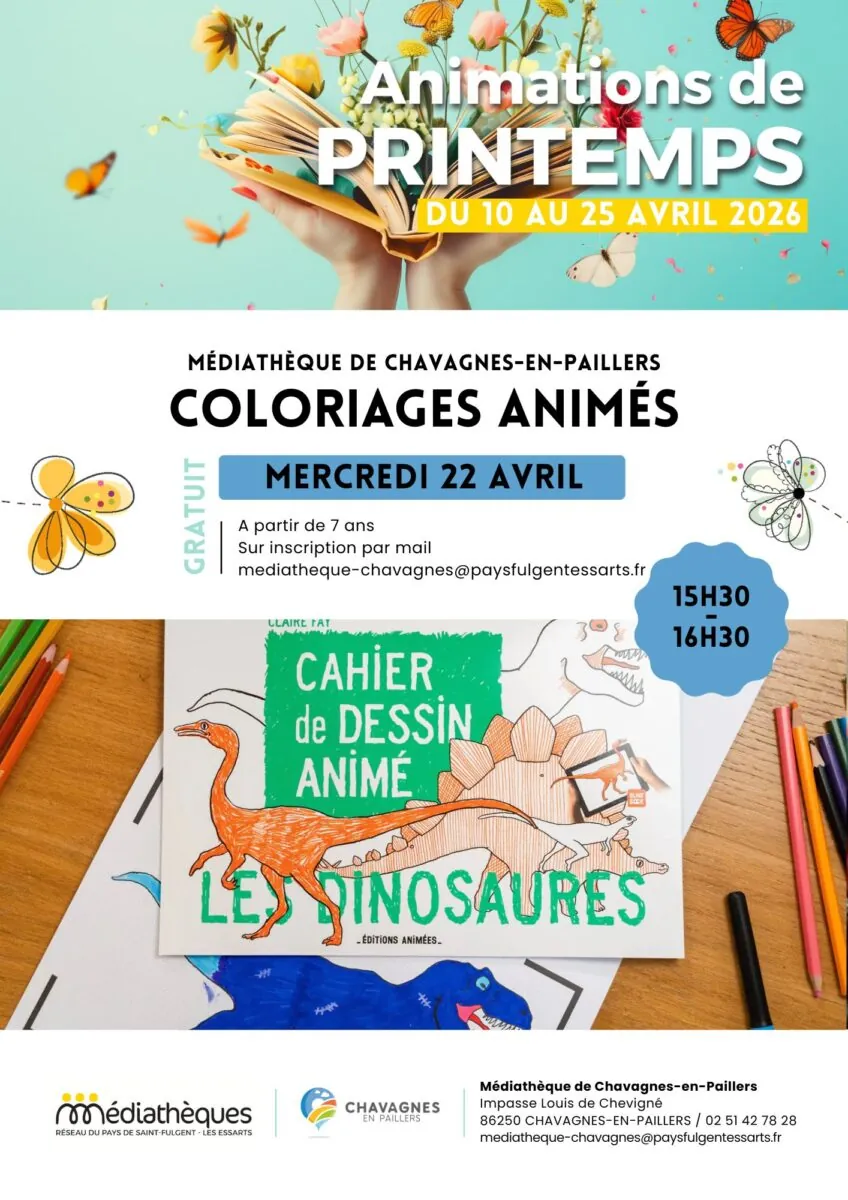 La bibliothèque propose un atelier Coloriages Animés inédit ! Le principe est simple : les enfants colorient leur créature préhistorique préférée, et grâce à la magie du numérique, elle s’anime sous leurs yeux !