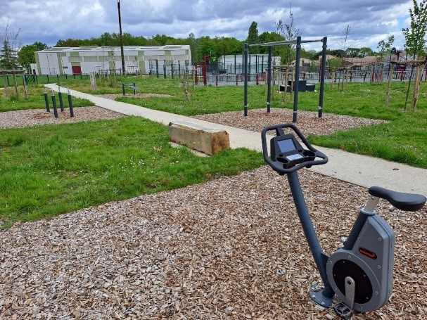 De plus, le parc est directement accessible via un réseau de liaisons douces sécurisées (piétons, vélo) depuis le centre-bourg et le secteur des écoles. Des supports vélos sont ainsi prévus aux 4 entrées du site.