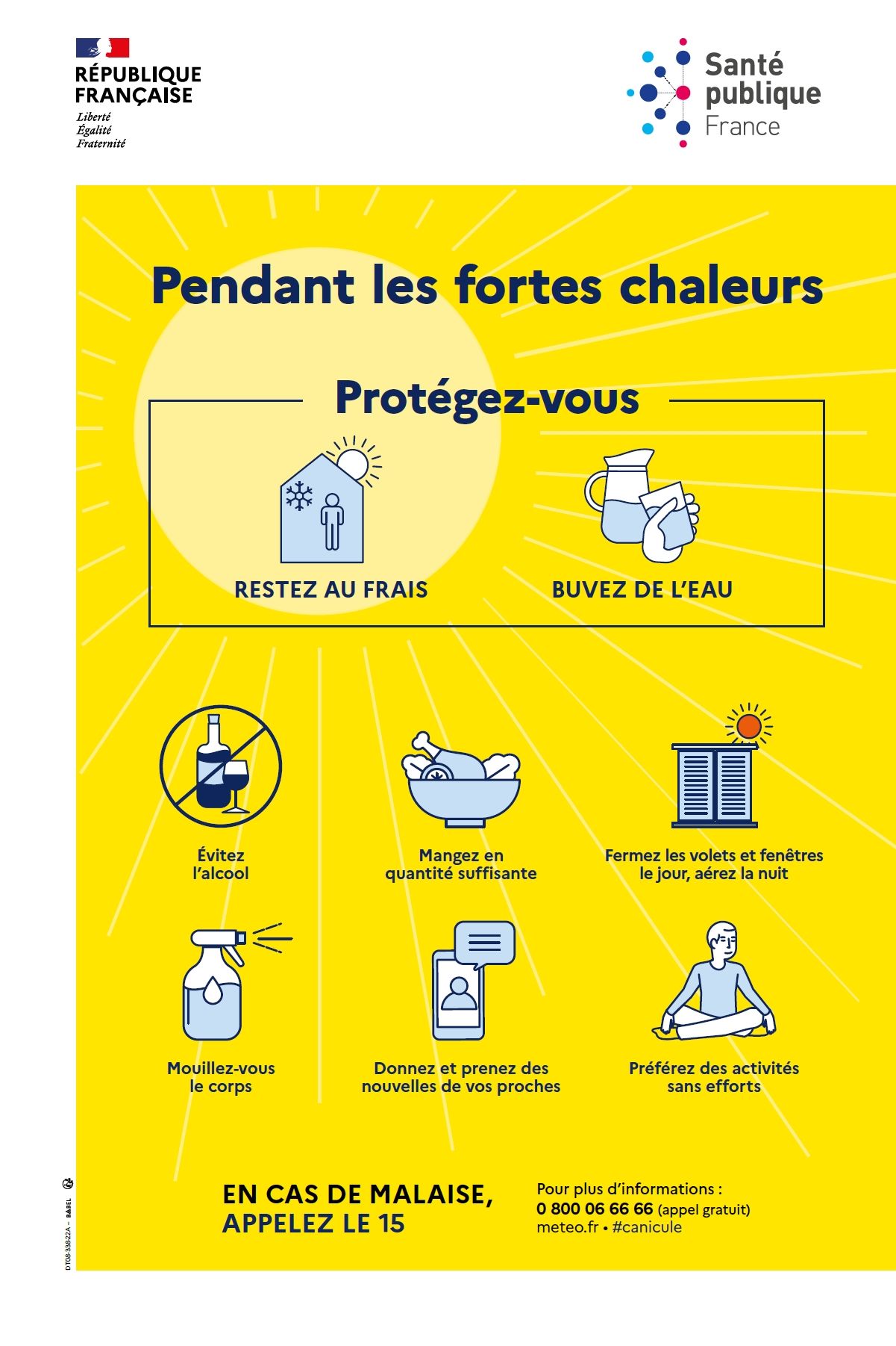 En cas d’épisode caniculaire, merci de bien respecter les consignes et de veiller régulièrement à l’état de santé de vos proches les plus sensibles.