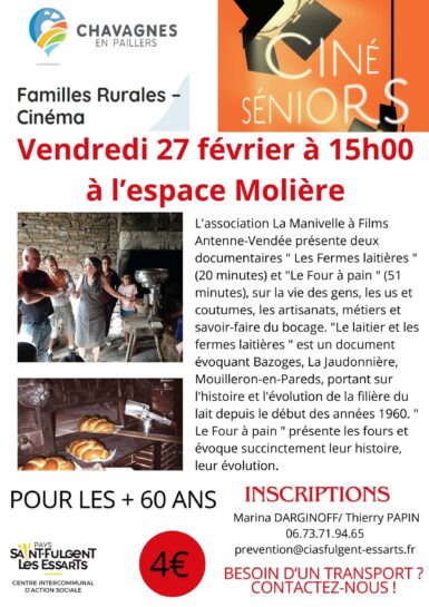 Le Centre Communal d'Action Sociale et le cinéma Familles Rurales vous proposent un documentaire sur l'évolution de la collecte du lait et de la fabrication du…
